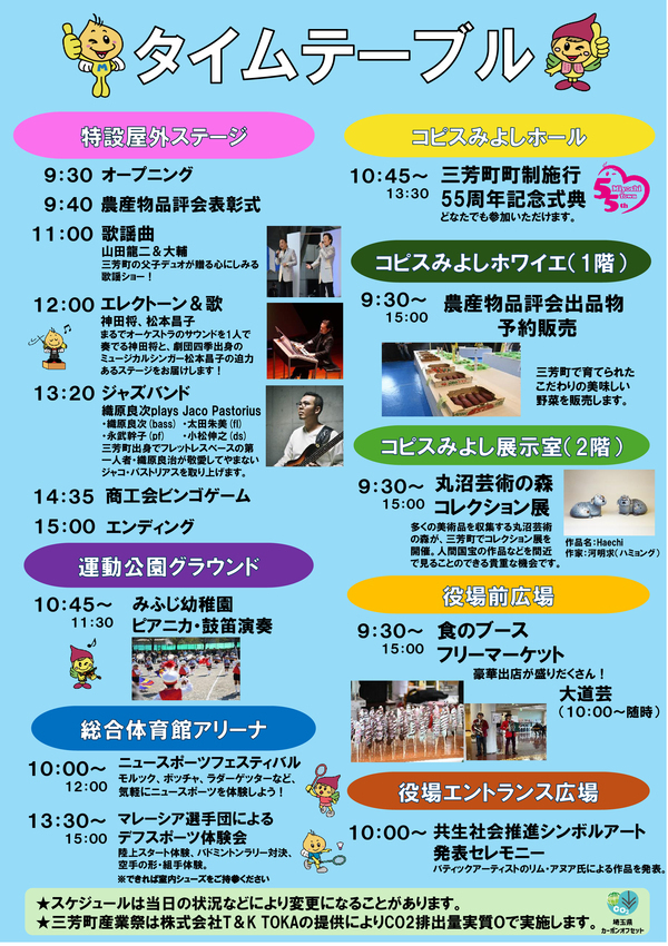 第42回三芳町産業祭withみよし芸術祭は、埼玉県カーボンオフセット・マッチング事業によって株式会社T&K TOKAからクレジットの提供を受け、CO2排出量実質ゼロで実施しています。