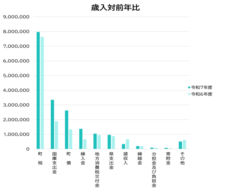 町の財政と家計では、仕組みの違いにより単純に比較できないところもありますが、令和7年度の一般会計予算を年収500万円の家庭にあてはめてみました。