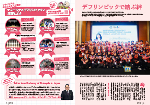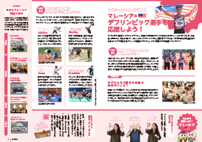 表紙:三芳町はマレーシア・ペタリングジャヤ(PJ)市との姉妹都市の絆から、同市出身のろう者でアーティストのリム・アヌア氏を招いて、共生社会を推進しデフリンピックを応援するアートを制作しています。三芳町役場庁舎の中央エントランス広場の床面と壁面を彩るこのアートは、11月9日(日曜日)の発表セレモニーでお披露目されます。 | P1 | |